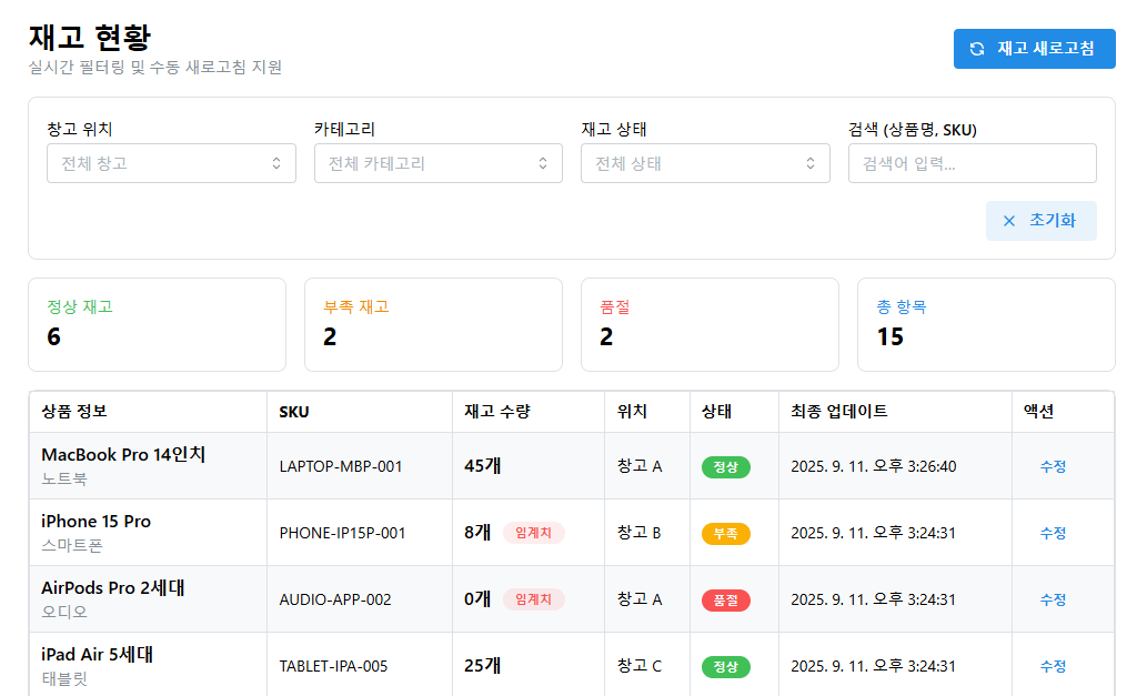 | 4. '새로고침' 버튼 클릭 | false | true | 데이터 리페칭. |
