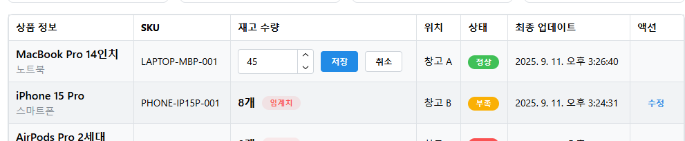 }재고 수량을 수정하고 '저장' 버튼을 눌렀을 때의 흐름은 TanStack Query의 진정한 파워를 보여준다.